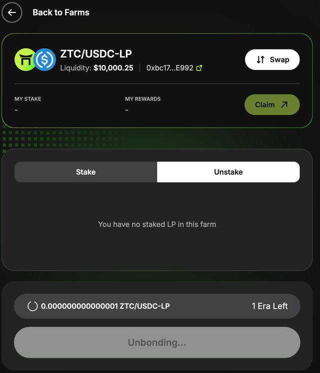 - Unstaking Period: When you unstake, your tokens enter an "unlocking" period determined by ZenChain's native staking