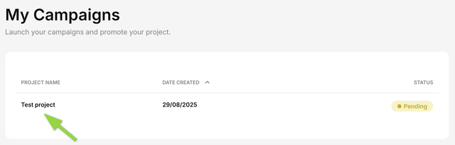 - Go to Campaigns → My Campaigns → Your Campaign.