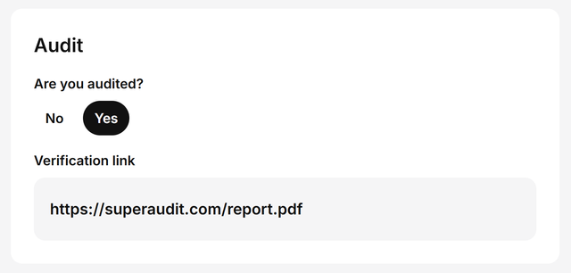 - Optional: Audit report URL.